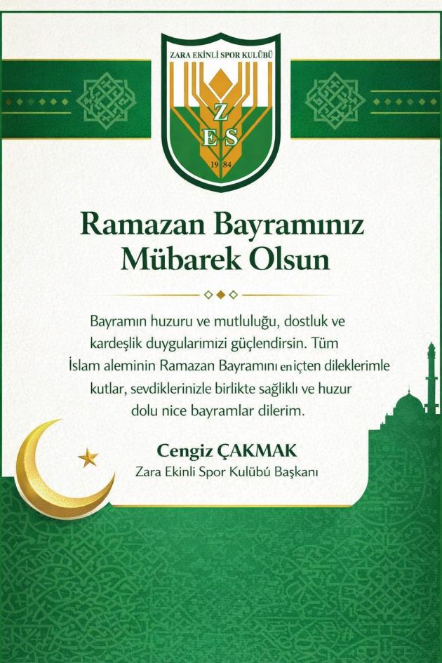Değerli hemşehrilerim ve kıymetli Zara Ekinlispor camiamız,